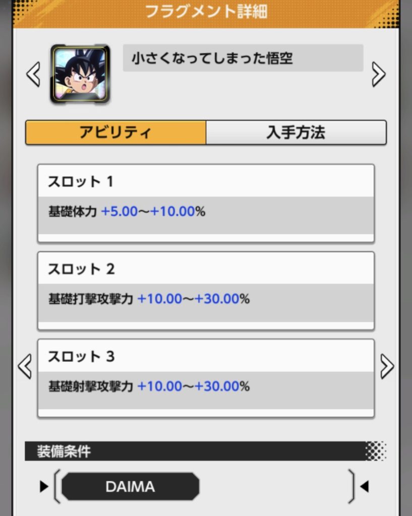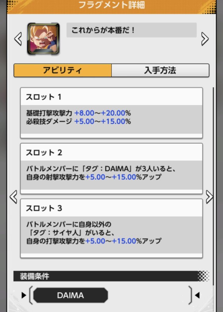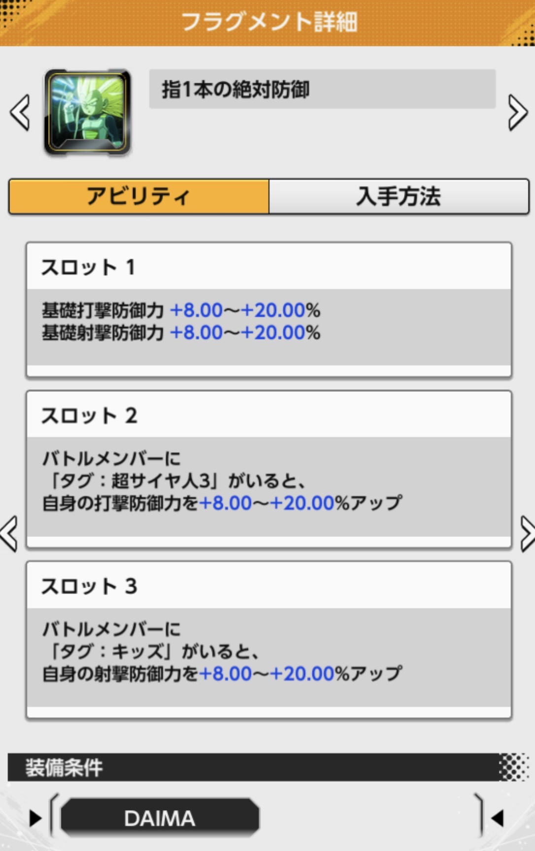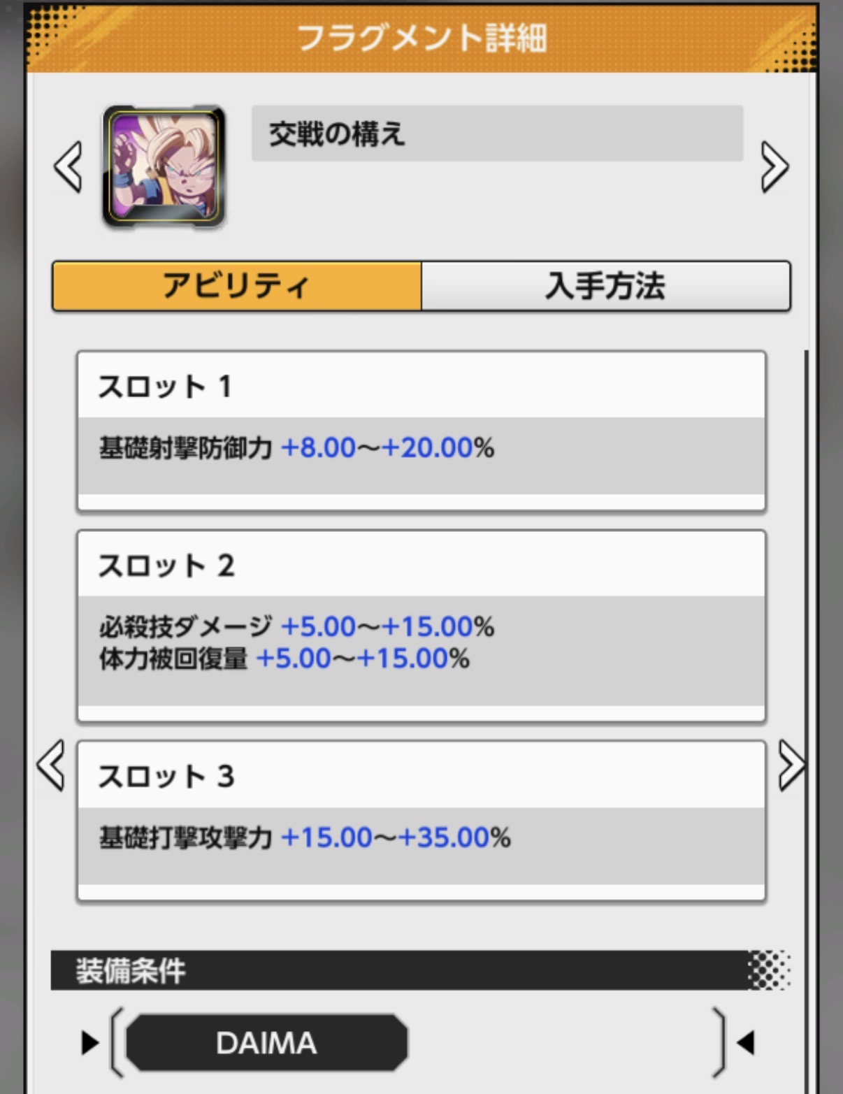 入手方法:最強フラグメントコレクション NORMAL DAIMA