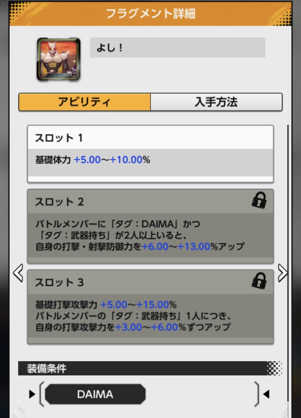 入手方法:最強フラグメントコレクション NORMAL DAIMAⅡ