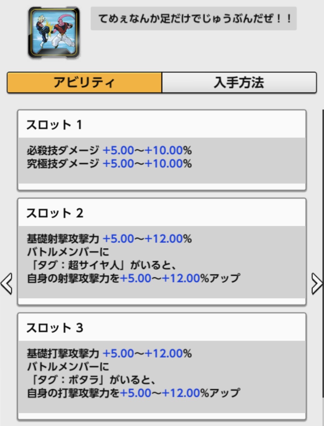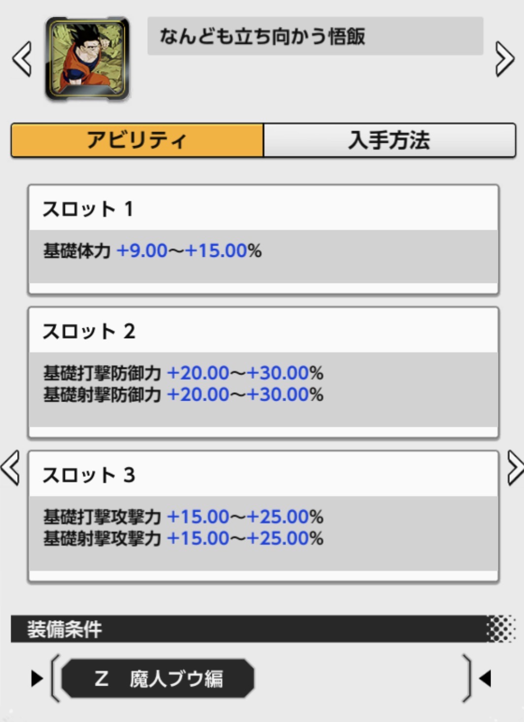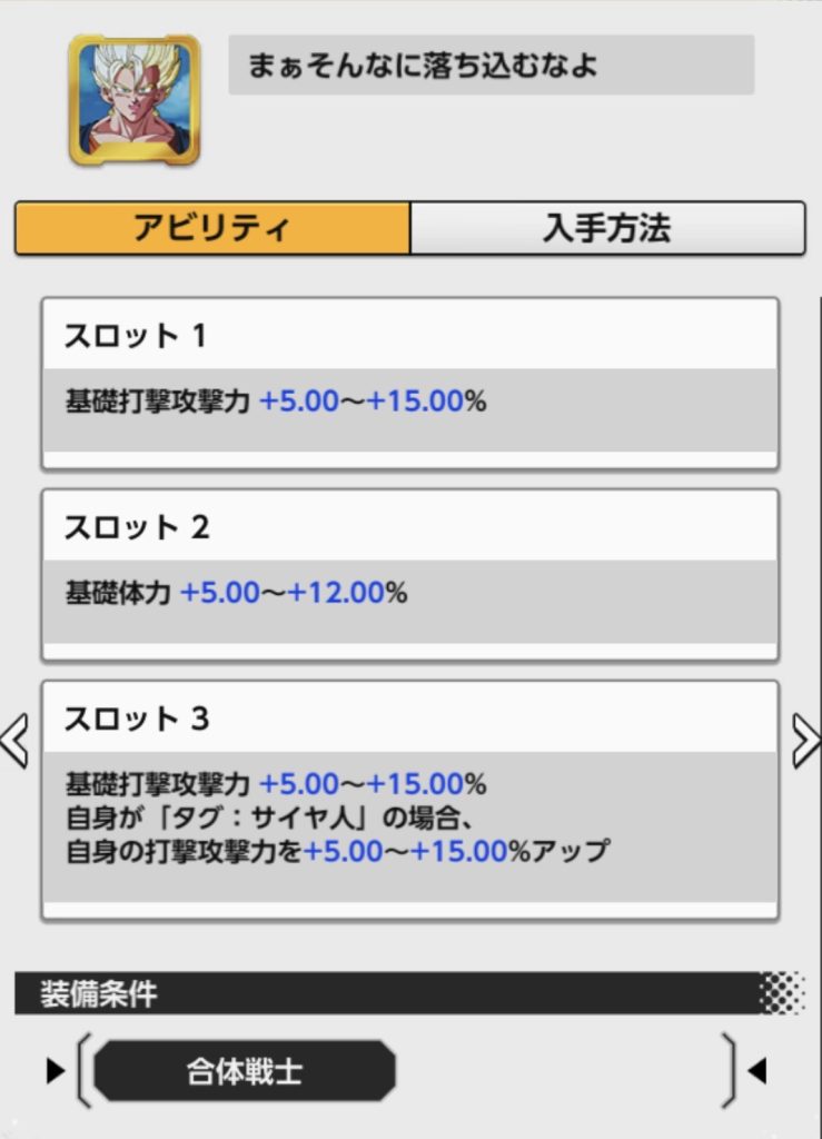 装備条件:合体戦士かつZ 魔人ブウ編