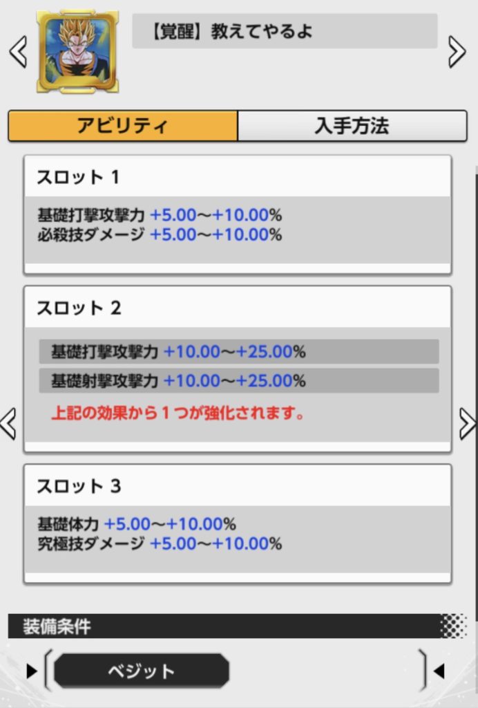 スロット2は基礎打撃攻撃力のほうにしましょう。
