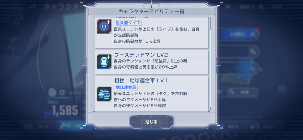 キャラクターアビリティのブーステッドマンは発動条件厳しいですが発動すると強力。