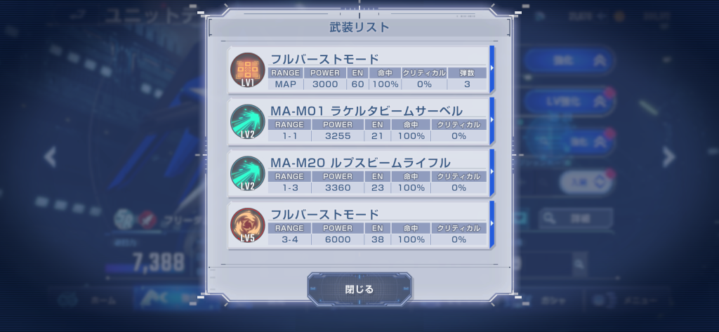 武装スキル上げも簡単でフルバーストモードの攻撃力はlv5で6000にもなります。