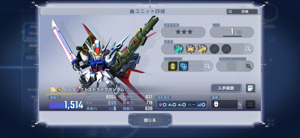 開発時のコツとしてはソードストライクとランチャーストライクは育成元のスカイグラスパーはハードモードで鹵獲したほうがキャピタルと手間の節約になります。